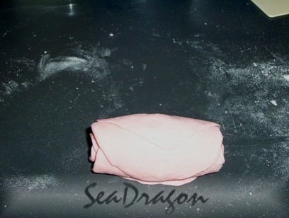 2. Sift flour, salt and caster sugar onto the working surface. Add instant dry yeast and stir into the flour mixture; mixing well. Form the flour mixture into a well. Add colouring. Gradually add just enough lukewarm water to form into a slightly sticky, soft dough. Knead for 10 minutes, adjust with more flour or water if the dough feels too wet or too dry.