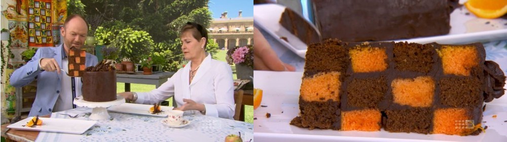 Wow, love the show. Finally, a show with competent contestants, and no inane repetitive recaps every few minutes like MCA! Those amazing cakes had me drooling from start to finish! Will definitely try to bake some of those recipes… Especially the Chocolate and Orange Checkerboard Cake, although that cake is huge, maybe I’ll try a smaller version making it like a Battenberg Cake in loaf tins. The ganache must be one of the missing instructions, seeing how varied all the ganaches were done by the different contestants.