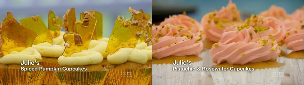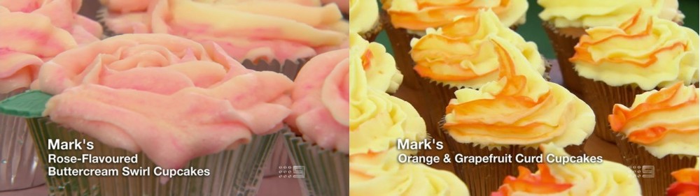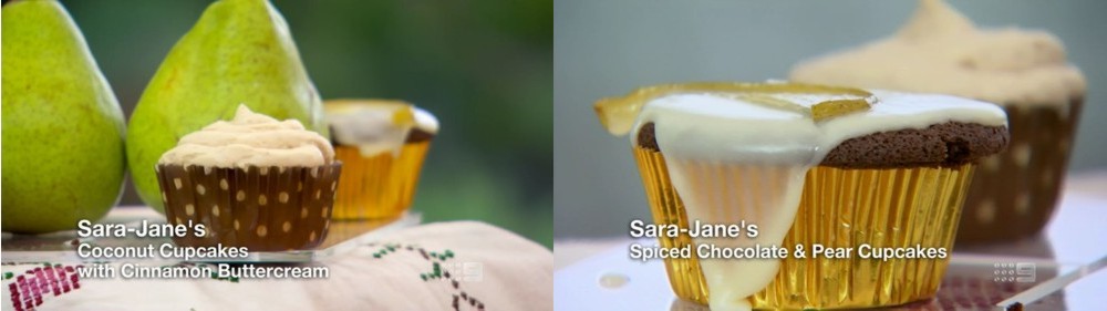 Signature Bake – 2 flavours x 12 cupcakes (Mark’s Orange and Grapefruit Curd Cupcakes, Steve’s Coffee and Whisky Cupcakes, Jonathan’s Na, Na, NaNa, Na Cupcakes (Banana – Peanut Butter), Sara-Jane’s Spiced Chocolate and Pear Cupcakes)