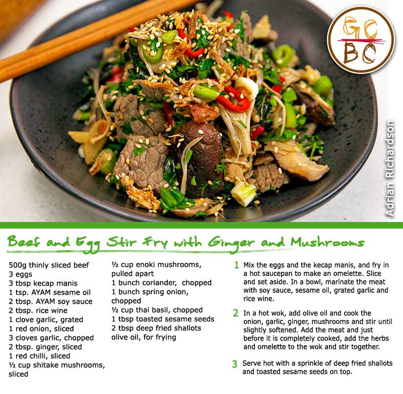 Beef and Egg Stir Fry with Ginger and Mushrooms (Adrian Richardson)