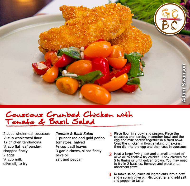 Couscous Crumbed Chicken with Tomato & Basil Salad (Adam Swanson)