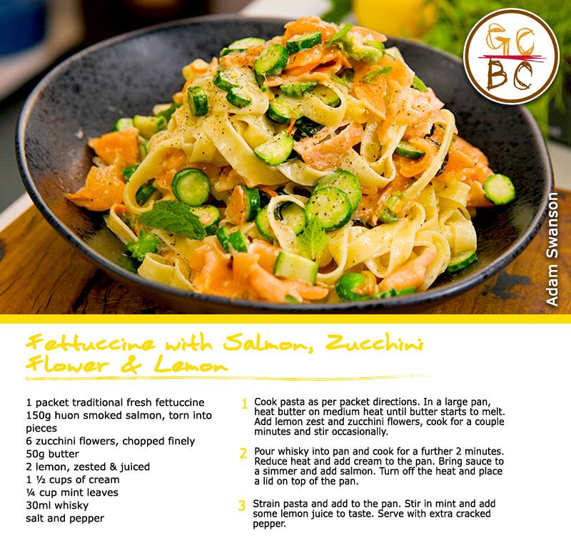 Fettuccine with Salmon, Zucchini Flower & Lemon (Adam Swanson)