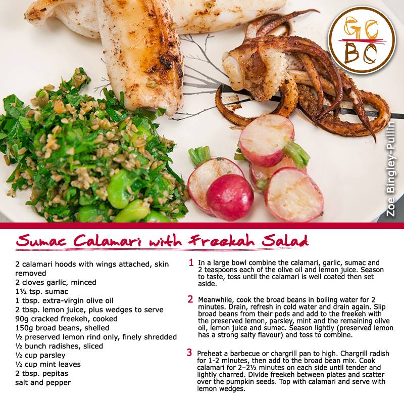 Sumac Calamari with Freekah Salad (Zoe Bingley-Pullin)
