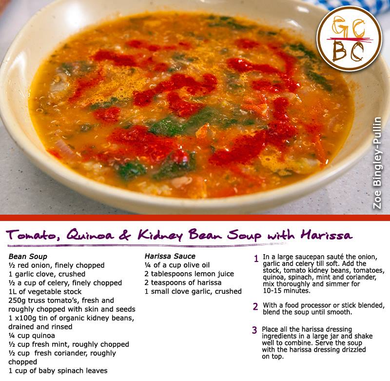 Tomato, Quinoa and Kidney Beans Soup with Harissa (Zoe Bingley-Pullin)