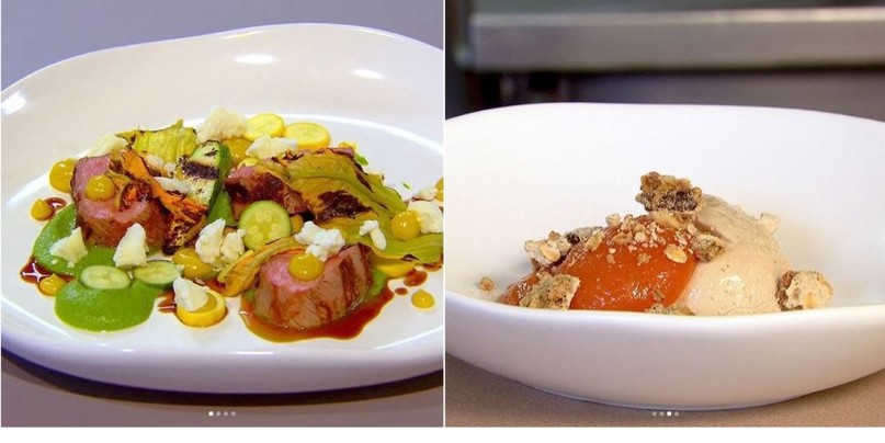 Chloe gets to pick 10 ingredients from a table of 50 ingredients and make a dish in 75 minutes. The guest chef must use the same 10 ingredients but only have 60 minutes to cook.