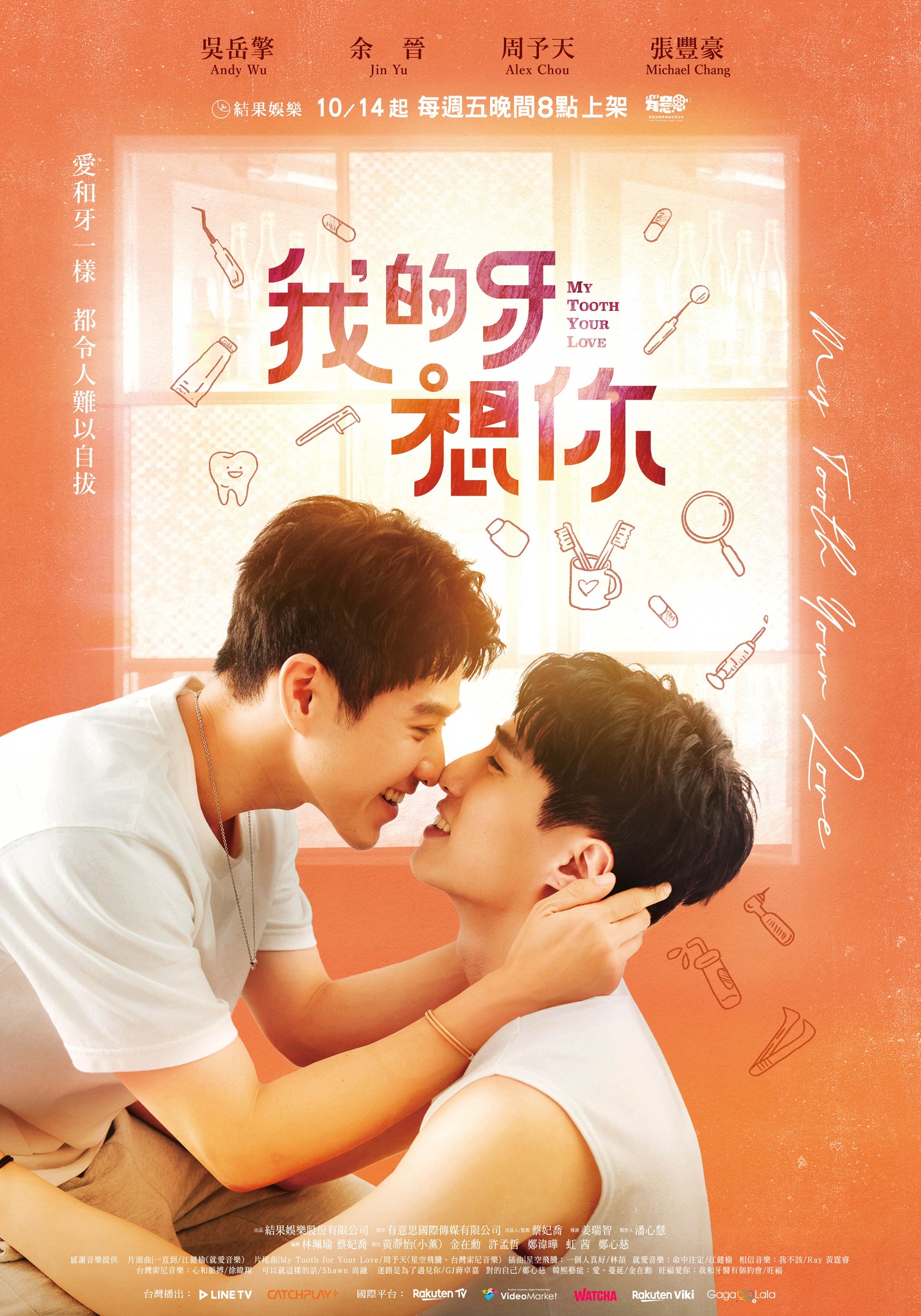 My Tooth Your Love 我的牙想你 is a new 12-episode Taiwanese BL series that will premiere on October 14, 2022. This is the third BL series from Result Entertainment 結果娛樂 who also produced the two We Best Love series last year.