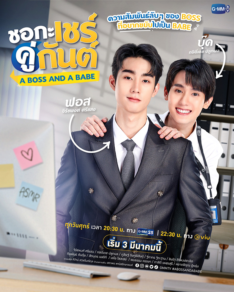 A Boss and a Babe ชอกะเชร์คู่กันต์ is a new 10-episode Thai BL series which premiered on March 3, 2023. It is adapted from the e-book called คบวันนี้เลิกกันปีใหม่ #ชอกะเชร์คู่กันต์ (translated roughly as Today’s Relationship Breaks Up in the New Year #shipchergun) by Brave2Y หน่วยกล้าวาย. The first song from the OST has been released…