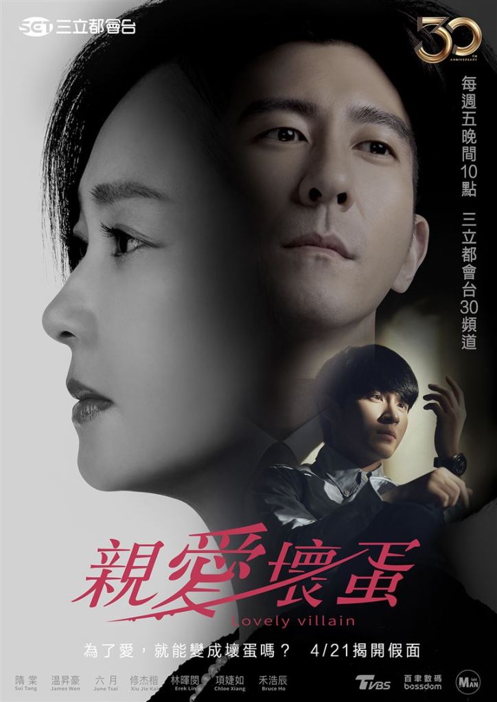 Lovely Villain 親愛壞蛋 is a 9-episode Taiwanese drama series that premiered on April 21, 2023. There are four songs from the OST.