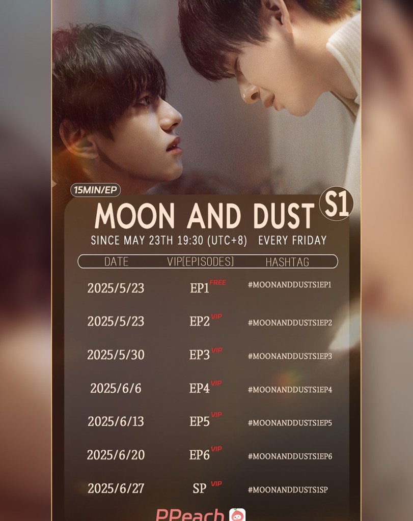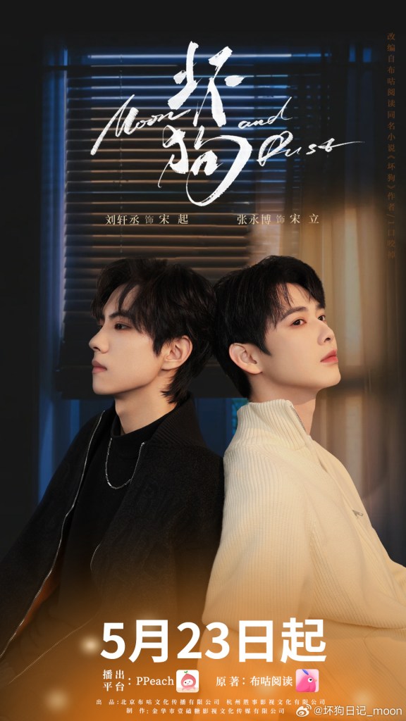 Moon and Dust 壞狗 (Chinese title means Bad Dog) is a 6-episode (about 15 minutes or less per episode) Chinese BL series which premiered on May 23, 2025 on PPeach app and YouTube. It is the same app that made Uncle Unknown 叔不知 (12×7-minute series, I didn’t make a post for it since there’s no OST) last year. I thought they were not going to release the OST for this one, but surprisingly they have released two out of three songs on the OST since a couple of weeks ago…