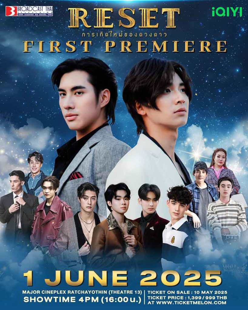 Reset การเกิดใหม่ของดวงดาว is a 10-episode Thai BL series which premiered as a theatre showing of episode 1 (apparently only 60% of it only, LOL…) on June 1, 2025 in Thailand. It began its TV broadcast and online streaming from June 2, 2025.