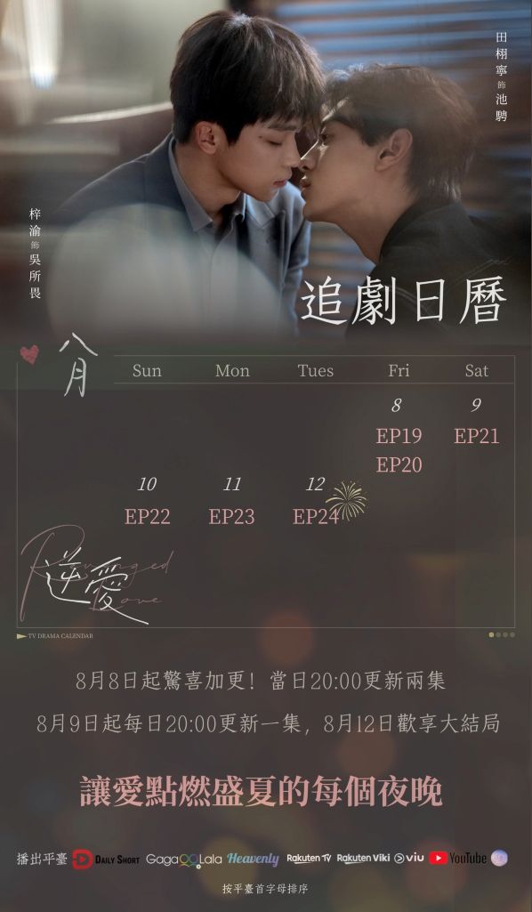 Revenged Love 逆愛 is a 24-episode Chinese BL series that premiered on June 16, 2025, of course for international releases only outside China. It is a remake of the 8-episode Chinese series from 2015, Counter Attack: Falling in Love with a Rival 逆襲之愛上情敵. Both series are adapted from the classic BL novel Counter Attack 逆襲 by Chai Ji Dan 柴雞蛋 who is best known for her other acclaimed BL novel Are You Addicted? 你丫上瘾了 which has been adapted into a few Chinese and Thai versions of web drama in recent years.