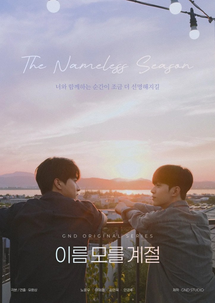 The Nameless Season 이름 모를 계절 is an upcoming Korean BL series which will premiere on August 9, 2025 on GND YouTube channel. There is no information as to how many episodes there will be, but it will probably be a short series of about 10 minutes per episode, if GND’s previous series are any indication.