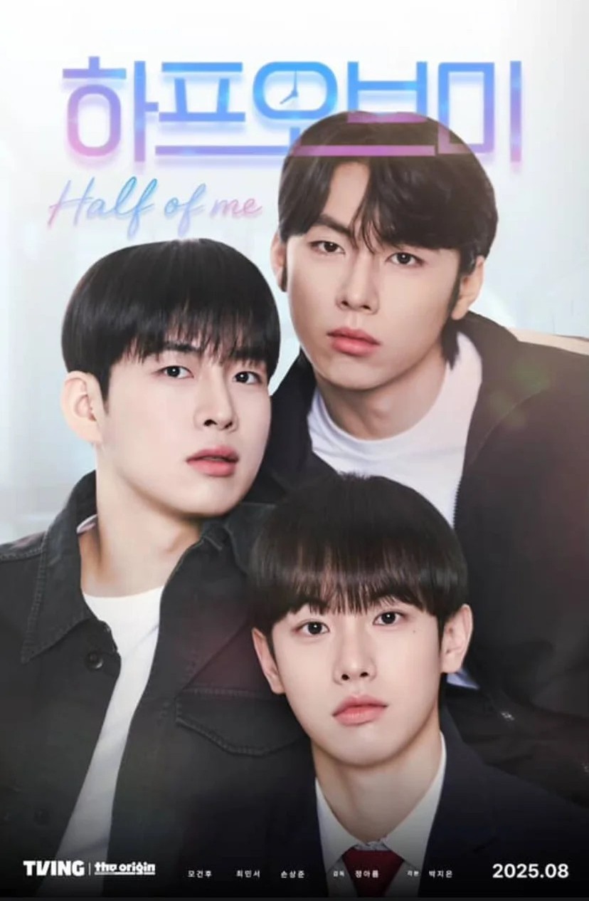 Half of Me 하프 오브 미 is a 51-episode Korean short-form BL series which will premiere on August 18, 2025 on South Korean’s streaming platform, TVING. The drama is adapted from the webnovel of the same name by SamK.