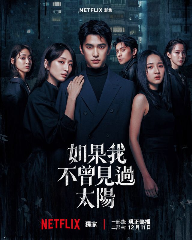 Had I Not Seen the Sun 如果我不曾見過太陽 is a 20-episode Taiwanese mystery romance series that premiered with Part 1 一部曲 of 10 episodes on November 13, 2025. Part 2 二部曲 of another 10 episodes is scheduled to premiere on December 11, 2025.